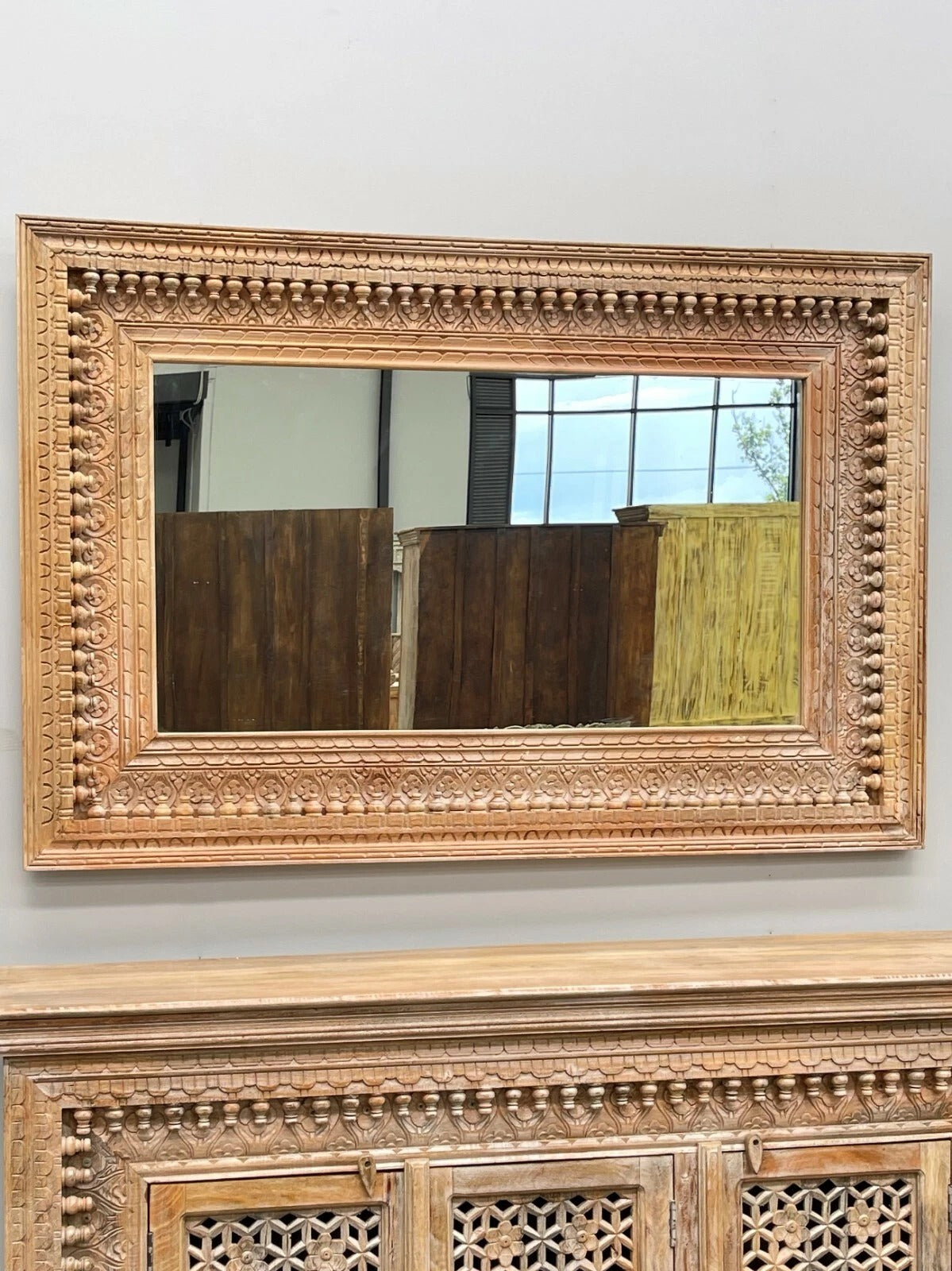 Enhance your home with the timeless sophistication of the Elegance Revived Horizontal Mirror Antique Wooden Frame, designed exclusively for wall decor enthusiasts who appreciate vintage charm. Crafted from premium-quality mango wood, known for its robust durability and unique grain patterns, this elegant frame brings a touch of heritage to modern living spaces.