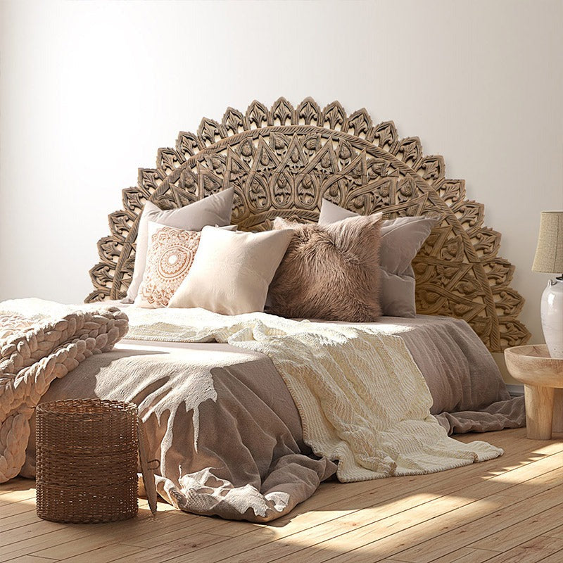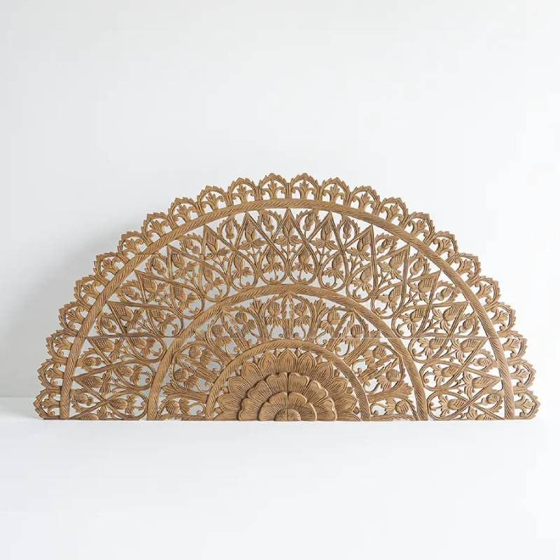 Round Mango Wood Wall Art | Light Walnut Finish | 180x90cm