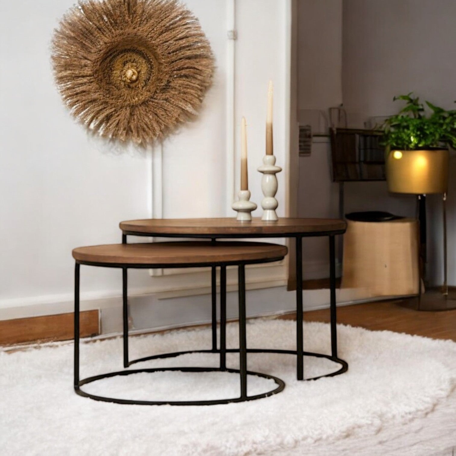 The round iron coffee table brings an industrial flair to your living room. With its sturdy metal construction and simple yet bold design, this coffee table complements modern, industrial, or urban-themed spaces. The round shape softens the edges of hard metal, making it a perfect blend of form and function.