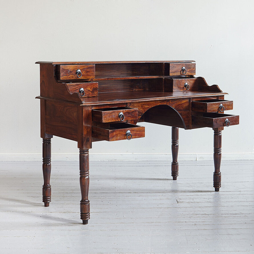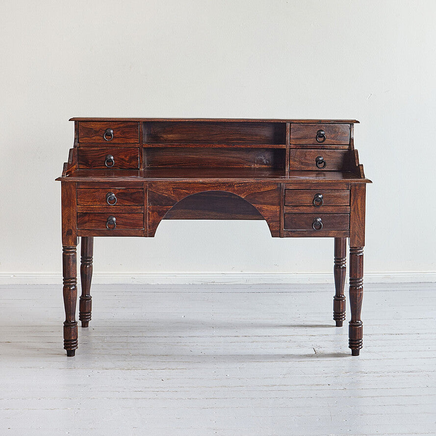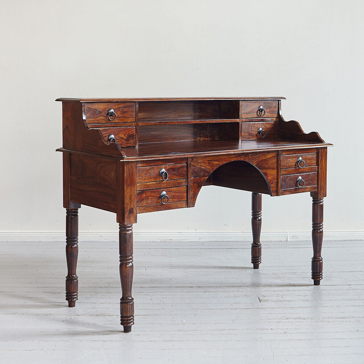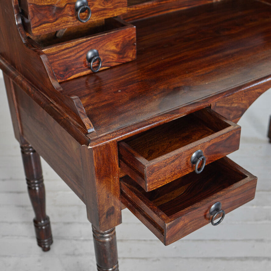 Solid Sheesham Wood Writing Desk — Multi‑Drawer Secretary, Rich Brown, 135 × 103 × 60 cm